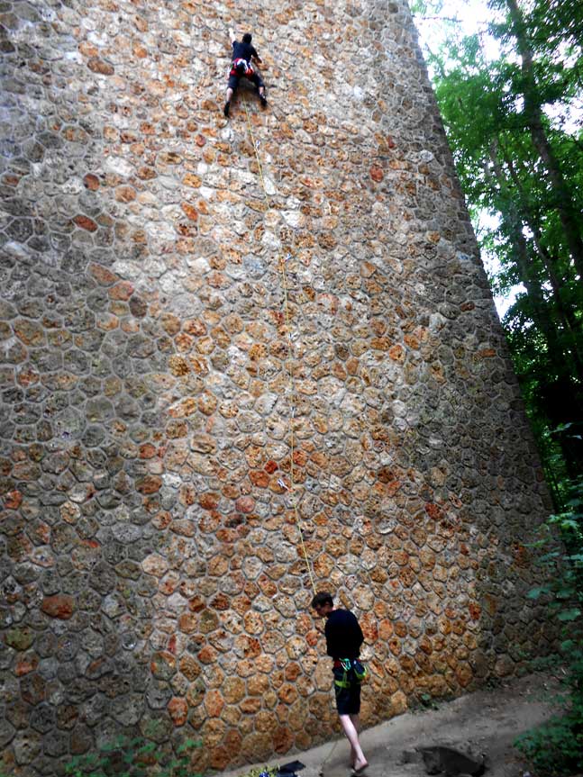 Ce viaduc, construit entre 1907 et 1913, est conçu de 16 arches. Il servait autrefois de voie de chemin de fer. Plus aucun train ne passe depuis 1953, suite à une destruction partielle pendant la seconde guerre mondiale. Depuis, le viaduc a été rénové, il est devenu un site d’entraînement de spéléologues et de grimpeurs. Le viaduc fut édifié par superposition de pierres de Meulière taillées en hexagone (Cocorico !). Vous allez me dire, mais comment peut-on grimper sur un viaduc constitué de pierres lisses ? Je crois qu’il est important de faire un point géologie et culture.